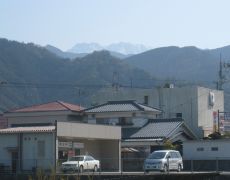 遠方に石鎚山系を望む