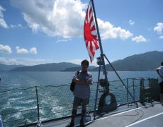 ●敦賀港を出港し帰港までの約2時間敦賀湾を周遊する。当方、護衛艦の乗艦や体験航海するのは勿論初めてで、また、今後においても護衛艦での航海の体験はなかなできないであろう。体験航海の後半は、暑さでややバテ気味となってしまったが今回貴重な体験をさせていただいたものと感じている。