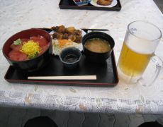 マグロ丼と鯨の串カツ