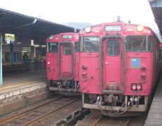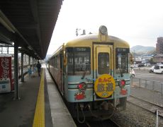 ●京都駅からは山陰本線(愛称嵯峨野線)に乗り換え、途中保津峡のトロッコ電車と並行しながら保津川を上る。やがて、山間部を過ぎ綾部駅で舞鶴線に乗り換え西舞鶴駅に到着する。ここからは当方初めての乗車となる北近畿タンゴ鉄道で豊岡駅へと向かう。この区間の料金は青春18きっぷがあれば、500円で青春フリーきっぷを購入することができ非常にお得である。また、この区間は名所に近づくと列車は停車し、車内放送で乗務員(可愛いお姉さん!)が案内してくれるサービスもある。しかしながらここでの道中約2時間は、これまで電車がスムーズに運行されていたせいからか時間が長く感じられた。