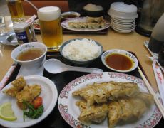 ●福知山駅で駅構外に出て駅前の飲食店を探したのだが、これと言ったお店が見つからず結局、駅構内のテナント内の「餃子の王将福知山店」で夕食となる。当方、餃子定食と生ビールを注文したのだが、今思うとどう見ても食べ過ぎ・飲み過ぎだったようである。