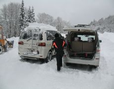 ●駐車場での雪かきの後、黒姫高原から南西へ約1時間程車を走らせスキー場に到着する。メンバー全員が、5時間券を購入しゲレンデを滑降する。戸隠では、今回メンバーの年長者「トクさん」がスノーボードに乗り換えたので、ボーダーが4名、スキーヤーが3名となった。