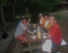 ●日本酒も前日同様2升を一撃で完飲し反省会もお開きとなる。その後は、各自後片付けを済ましてバンガローへと戻り、最終日の登頂に備え各自就寝することとなる。