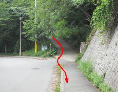 まで舗装道を下る