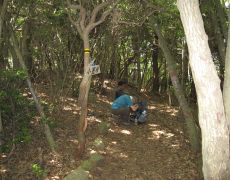 ●昼食の際に、ここから三宮駅方面へ向かうのは時間的に無理であるとの結論から、ここで目的地をJR甲南山手駅方面へと変更することとなった。よって、石宝殿からは一軒茶屋を経て前回3月に開拓した黒岩谷沿いの尾根道を下り土樋割峠へと向かう。