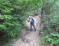 慎重に急坂を下る