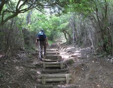 ●水越峠で昼食を取った後は、本日の最難関となる葛城山頂付近までの階段状の急登を迎えることとなる。約2kmも続く登山道でまた標高差も約400mもあり、道中に3回も小休止を入れたことから山頂まで2時間も時間を要してしまう。過去にこの道を下った際は、1時間も掛からなかったのだが・・・!。今回は鍛錬と言うことで敢えてチャレンジしたのだが、普段の山行きではこのルートを選択することは先ずないだろう。