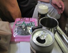 ●その後JR高知駅行きの列車に乗車したころから、自宅から持参した缶ビールはなくなってしまうが、お連れさんの多量の差し入れがあり酒やアテに不自由することもなかった。なお、お連れさんにお金と気を遣わせた結果となってしまった様なので、次回からは子供の頃の遠足のように、ある程度持ち物に制限をかける必要があるかも知れない。何やかんやで今回は2人でのツアーだったせいか、時間の長さを余り気にすることもなく運行ダイヤどおりにJR高知駅に到着し1日目の列車での旅を終える。