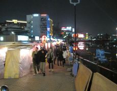 ●ホテルで軽く小休止した後に、午後7時から情報雑誌を片手に今回ツアーの最大の目的である博多の繁華街「中州」と「天神」へと向かう。博多駅から博多駅前通りを歩き、最初は繁華街界隈の目印である複合ショッピングモール「キャナルシティ」を目指す。ここから那珂川沿いの屋台を散策し「もつ鍋」を食すためお店を探す。国道202号国体道路を歩いているときにたまたま見つけた「居酒屋 まる家」で「もつ鍋」を食す。このお店は持参した情報誌には掲載されていなかったが、当方のペンネーム「まるやさん」と同じで愛着?があったかも知れない。