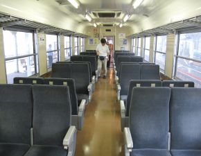 ●往路は降雨のため予定のトロッコ車両に乗車することはできなかったが、予備車両の客車内でご当地の駅弁「仁多牛べんとう」とアイスクリームを食す。また、夏休みの繁忙期ではなかったせいか、乗客も5名程でゆったりとした列車の旅を満喫する。
