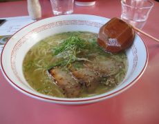 ●屋久島と言えばやっぱりトビウオとのことで、早速にトビウオと鰹節から取ったアッサリスープのラーメンと唐揚げをいただくこととなる。なお、 全国で水揚げされるトビウオの約2割が鹿児島県産であり、その内約7割が屋久島産であるらしい。また、トビウオのすり身で作られる「つきあげ」や首折れサバの刺身も美味だったようだ。