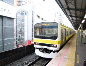 ●この日は、朝一番に両国にある国技館へ向かうこととなったので、浅草駅から両国駅間は都営地下鉄線を利用する。よって、青春18きっぷでの電車の旅は「総武線・中央線両国駅」からとなった。なお、今回のツアーで当方は、初日に東京駅〜上野駅間、この日は上野駅〜新宿駅間に乗車(山手線東側の区間)できたことから、これで山手線の全区間(一周)の乗車を達成することとなる。(手前味噌ではありますが・・・。)