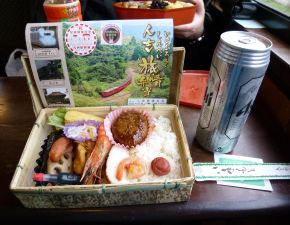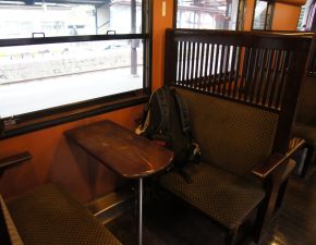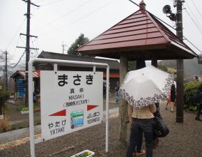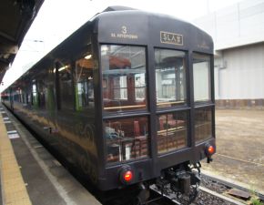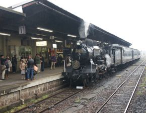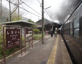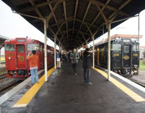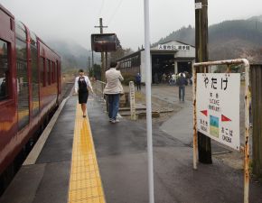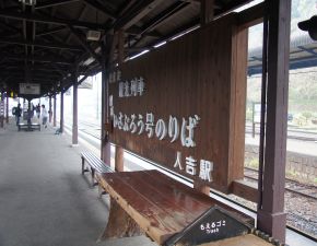 ●JR人吉駅で約1時間の待ち時間を経て、その後は「いさぶろう3号」に乗車し引き続き列車での旅を再開することとなる。今回のツアーでの唯一の普通列車の乗車で、また営業距離も35kmの短区間であるが、JR人吉駅(標高106.6m)から最高地点JR矢岳駅(標高536.9km)を経て、JR吉松駅(標高213m)の急勾配区間に、トンネルが21箇所とループ線1箇所、さらにとスイッチバック2箇所が設置されており、鉄道ファンや観光客にも人気のある区間でもある。