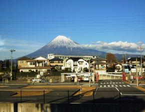 ●この区間は、駿河湾沿岸部から甲府盆地にかけて、富士山と赤石山脈(南アルプス)に挟まれた富士川の左岸(東側)を走るルートとなっている。また、今回のツアーの最初の目的でもあり、出発前から楽しみにしていたところである。なお、区間の北側は山岳路線であったが、南側は富士駅を出発してから西富士宮駅付近まで地形が開けており、所々で富士山の山景を望むことができたので、ここでは車窓からの富士山の画像を紹介します。
