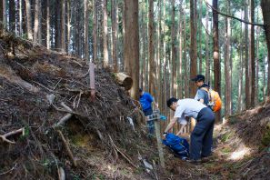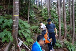 ●帰路は道中の後半に登頂したルートを外れ急勾配の道なき道を下ったことから、余計に体力を消耗する結果となってしまったが何とか下山を終える。その後は、道この日の昼食と夕食の食材等の調達のため新宮市街地へと向かい、この日も宿泊地の湯ノ口温泉へと戻り今回の遠征での山行きを全て終える。