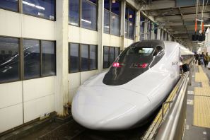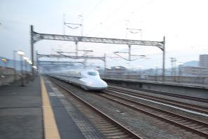 山陽新幹線・厚狭駅 11分間の停車時間中に 通過車両の撮影練習を行う |