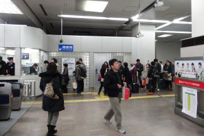 山陽新幹線・広島駅 精算所では多くの乗客が 長蛇の列を作っていた |