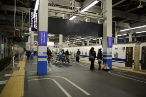 東海道・山陽新幹線ホーム 前日とは違い乗客は 少なく思惑どおり? |