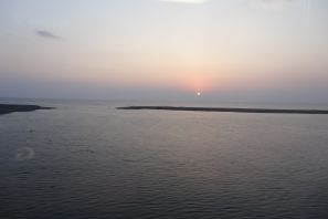 日豊本線・川南駅付近にて 車内からではあるが 日向灘からの日の出を望む |