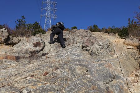 中山縦走路の鉄塔下の岩場