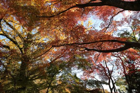 空を見上げて紅葉を望む