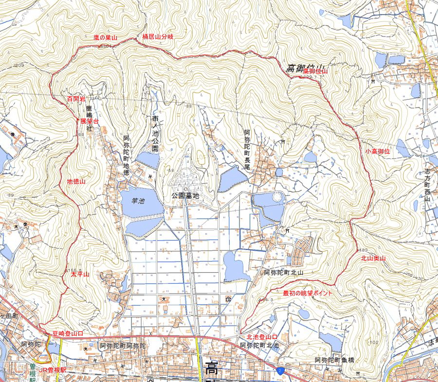 百闃竅@→ 展望台(休憩) →豆崎登山口 →JR曽根駅