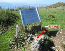 ●山頂付近は、登山客と共に伊吹山ドライブウェイからきた観光客で、山頂山小屋や売店は多くの人が訪れていたことから、早々に旧測候所近くにある三角点へと移動しここで大休止となった。ここからの眺望は、南側に関西百名山の藤原岳と御在所岳や、北側には日本百名山の荒島岳、また、北東側の彼方にある御岳までを収めることができ、約5年越しのリベンジを果たす。