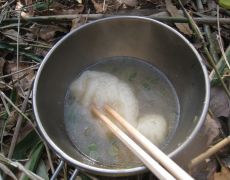 ●作業も終わりその後はいつもの反省会となる。メニューは定番の寄せ鍋でいつもながらに美味しくいただく。作業が思いの外早く終わった分反省会の時間が長くなり、途中たき火をし暖を取りなから宴は進んでいった。