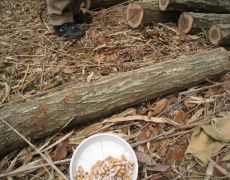 ここでは、この1月に行った恒例行事となった椎茸栽培のお手伝いの続きの記録を紹介します。昨年と同様、伐採したクヌギの木を切断し、電気ドリルで原木に穴を空け菌糸を入れました。なお今年は、菌糸の数を2,000個から3,000個に増やしましたが、思いの外作業がスムーズに進み、大方午前中には作業を終了することができました。
