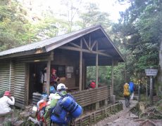 ●山の地図では「高塚小屋」の定員は10名で、就寝場所の確保に苦労するものと予想されたが、他の登山客は殆どが登山ガイドが同行し、ガイドが携行したテントで幕営していたので、小屋内ではスペースも充分に確保することができた。午後7時頃に就寝となり翌日の行程に備えることとなる。