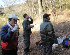 ●宴もあっという間に進み、気が付けば時間も午後4時を過ぎ、長い反省会もここで開きとなる。作業場所からの撤収を終えメンバー各自帰路へと着くこととなる。また、例年と同様に切り出した原木は暫く乾燥させる必要があるので、この原木に菌を入れる作業は3月中旬に改めて行うこととなる。なお、この記録は後日改めて紹介します。
