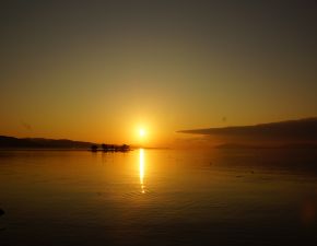 ●島根県立美術館に隣接するこの白潟公園には、2年前の4月に訪れたことがあるのだが、その時は朝方だったことから「日本夕日百選」となっている絶景の撮影は今回が初体験となった。天候も良好で最高のコンディションだったことから、当方がここに到着した時には、既に多くの観光客やカメラマン達がをレンズを向けていた。