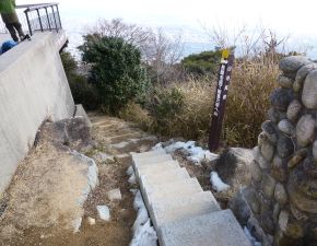 ●青谷道を歩き始めてから直ぐのところにある青谷東尾根との分岐を右折し、踏み跡が殆どない尾根道を登ることとなる。この尾根はいきなりの急登で、また、このルートはすれ違う他の登山客もなく、登山道は多くの落ち葉に覆われ何度も足を滑らしてしまう。さらに、所々に視界が開け、海側の眺望を楽しみながらの山歩きとなったことから、行程距離は短かったが思いの外時間を要し、また、何時もの山行きと比べて当方の足腰に負担がかかることとなった。数度の休憩を入れながらやがて登山道は上野道に合流し、ここから旧天上寺史蹟公園を経て摩耶山頂に到着する。その後は、山頂からすぐ近くにある椈星台へと向かいここで昼食を取る。