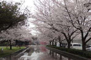 あいにくの天気で満開の