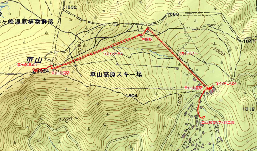 車山展望リフト駐車場 →SKAYPLAZA(昼食) →車山山麓駅 →車山山頂駅 →
