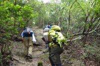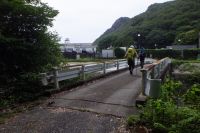 ダム堰堤からの放水を眺めながらここで暫しの小休止。