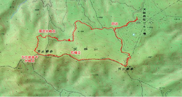 万三郎岳下分岐点→涸沢分岐点→四辻→天城高原ゴルフ場