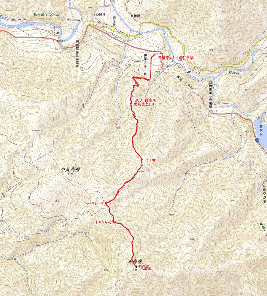旧勝原スキー場駐車場 →旧リフト最高所 →荒島岳登山口(休憩) →シャクナゲ平(休憩) →