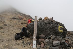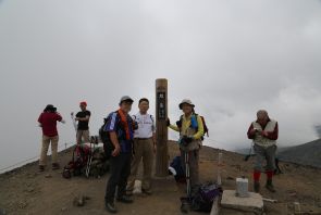 ●この遠征での三つ目の山だけあって、登頂メンバー全員一致で道中にロープウェイを利用することとなり、出発から約2時間で山頂に到着となる。なお、この日はこれまでの後方羊蹄山や幌尻岳の登頂とは違って天候には恵まず、山頂等での眺望を楽しむことはできなかったが、時間的にも余裕があったので姿見ノ池付近のお花畑を散策するなど、内容的には満足できるものであったようだ。