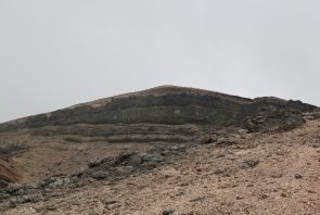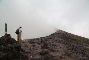 足元は火山礫で滑り