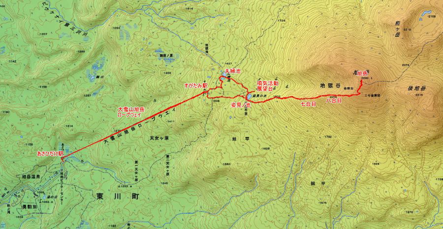 夫婦池 → ロープウェイすがたみ駅 → ロープウェイあさひだけ駅