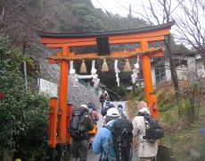 ●昼食・大休止を終え、今年は月輪寺方面には立ち寄らすショートカットのルートにて清滝バス停へと下山する。例年に比べ道には雪が多く、しばらくアイゼンを着けたままでの歩行となったが、ここも大きな遅れもなく辺りが暗くなる前に下山を完了する。清滝バス停からは京都バスに乗車し京福電鉄嵐山駅前バス停へと向かい、ここからは徒歩にて阪急電鉄嵐山駅に戻る。今年も大きなトラブルもなく、年始の恒例行事愛宕山登頂を無事終えることとなる。