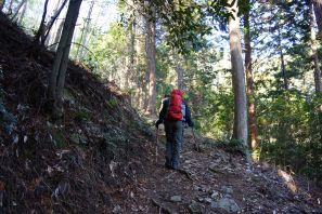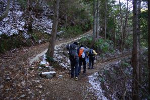 ●本年最初の山歩きは、今年もこの時期の恒例行事となっている愛宕山となった。今年は常連さんの欠席が多く、総勢5名の参加でやや寂しい中での出発となったが、例年とは違い登頂コースは愛宕表参道ではなく、清滝川沿いの舗装道の林道を北上し、大杉谷登山道からのルートとなる。当方を含めメンバー皆が初めての登頂ルートであったため、気分を新たに山頂へと向かう。