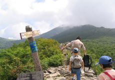 ●同行の子供達は、日本百名山の登頂は初体験で多少の不安があったのだが、これまでの山歩きの経験から登山口からハイペースで登り出す。途中で疲れも見せず結果的に道中は、子供達のペースに大人2人が何とかついて行ってる状況であった。