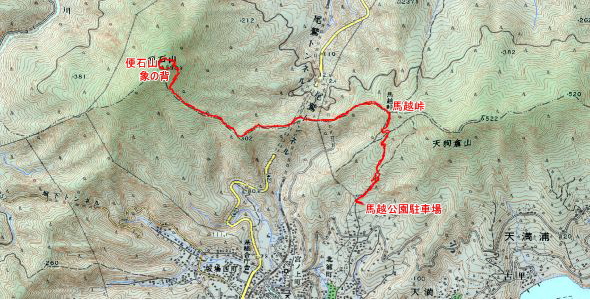 馬越公園駐車場→馬越峠(休憩)→便石山(599m)→象の背(休憩)→