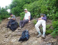 ●枝折峠までの復路も距離が長く、また後半にアップダウンも多かったことから、メンバー皆足腰の疲労がピーク状態となり三つのグループに分かれてしまう。その結果各々のポイントでの小休止が長めとなりかなりの時間を要することとなる。なお、道中に降雨もなくこの日もメンバー皆満足感に浸りながら無事下山を終える。