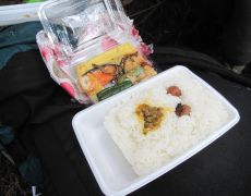 ●玉子岩の分岐からは、ぬかるんだ道を幾度となく足元を滑らせながら慎重に下る。途中の休憩で、宿で作ってもらった昼食を取りメンバー皆無事に下山を完了する。マイクロバスの出発時間は午後1時だったが、時間的にも余裕で平ケ岳出合に戻ることができた。