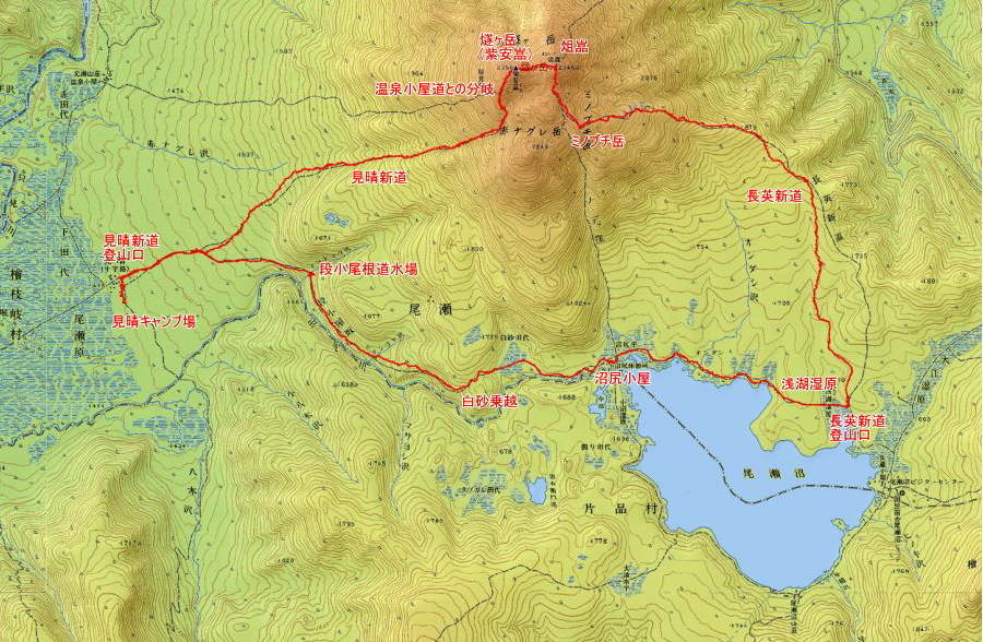 見晴キャンプ場→段小尾根道との分岐→燧ヶ岳(紫安ー)(2,356m)(休憩)→爼ー(三角点)(2,346m)(休憩)→