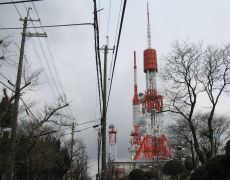 ●辻子谷コースの道は、石畳で滑りやすかったが一気に登り生駒山上遊園地入口に到着する。山頂は遊園地敷地内にあるとのことだが、探してもなかなか見つからない。遊園地は12月1日から3月14日まで休園中なので、あまりうろうろして不審者と思われるのもイヤなので先へと進む。生駒山頂のシンボルである複数のテレビ塔を、勝手に?三角点と見なすこととする。ちなみに、ここでは携帯電話のワンセグ放送を、アンテナを立てずに観ることができた。