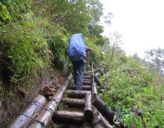 ●前日に台風が過ぎいざ出発したのだが、今度は秋雨前線の影響で悪天候が続いたことから縦走を断念し、また、行程を1日短縮しヒエ平登山口からの1泊2日の行程となった。